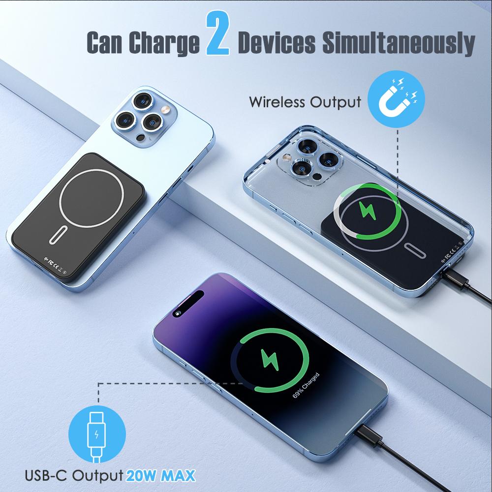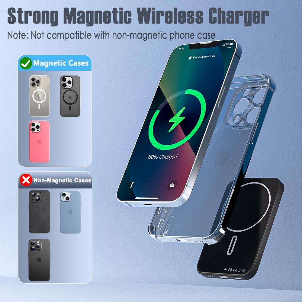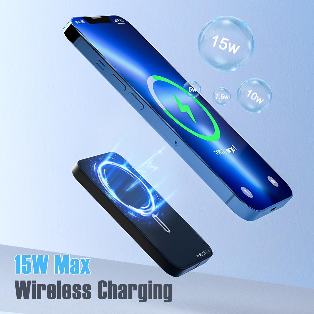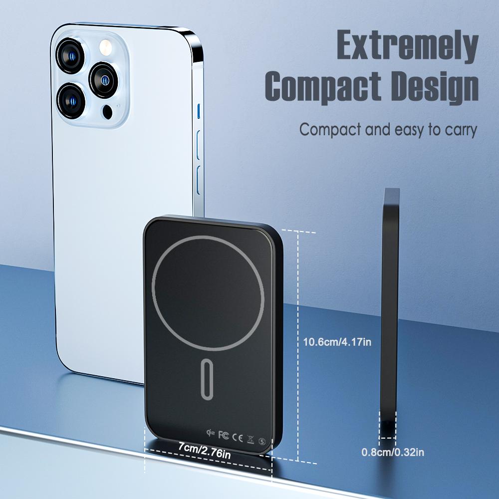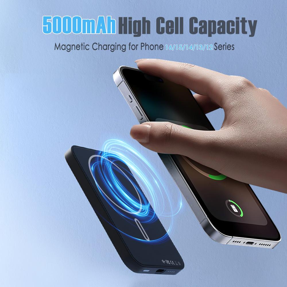 Magnetic Portable Charger 5000mAh Wireless Power Bank, 0.3" Ultra Slim Magnetic Power Bank Compatible with iPhone 16/15/14/13/12 Series, Black